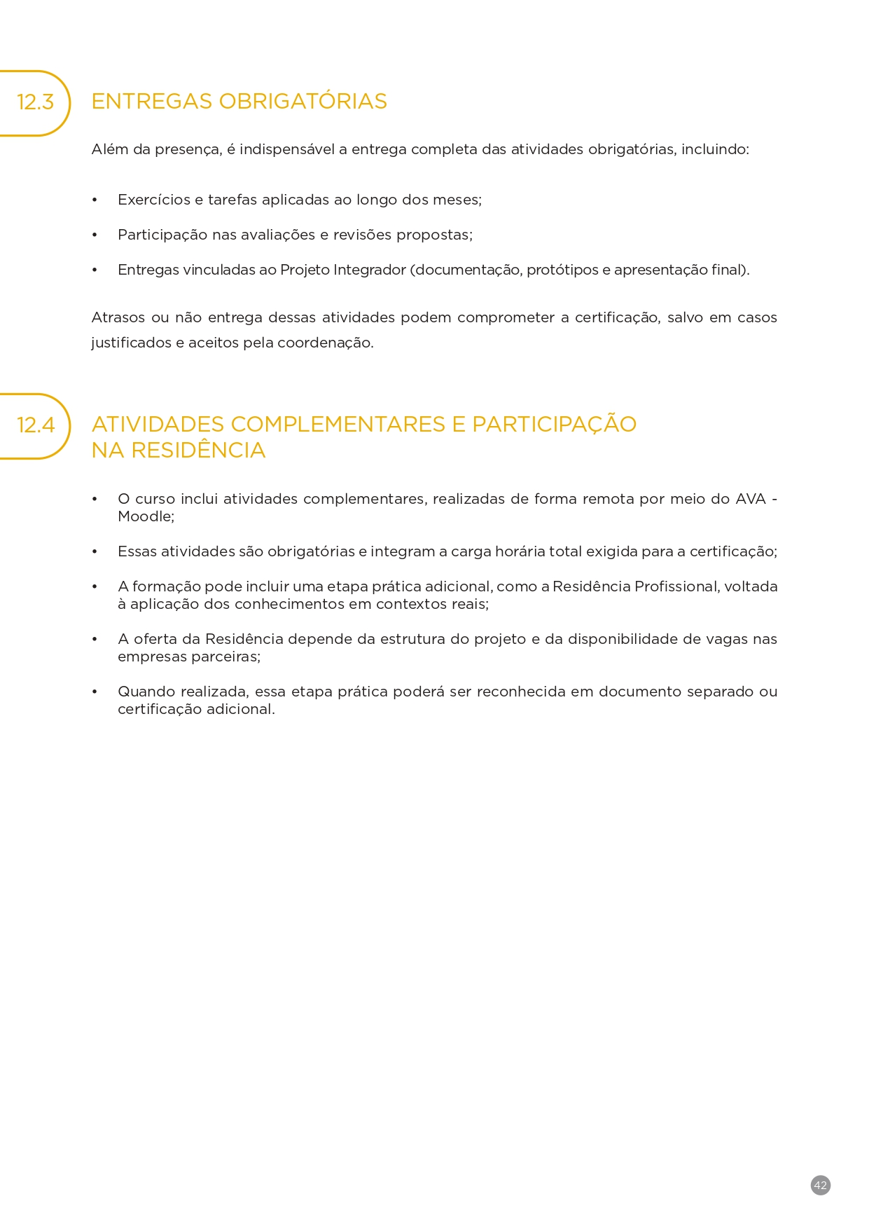 42. Critérios para a Certificação